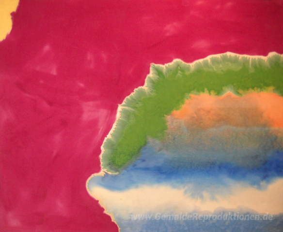 Wir bieten Ihnen eine handgefertigte Reproduktion auf Leinwand des berühmten Kunstwerks 'Red Wall' von Ronnie Landfield, aus dem Reproduktionsmuseum.
