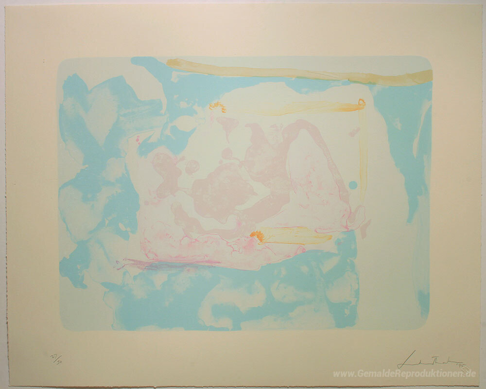 Wir bieten Ihnen eine handgefertigte Reproduktion auf Leinwand des berühmten Kunstwerks 'Reflections III' von Helen Frankenthaler, aus dem Reproduktionsmuseum.