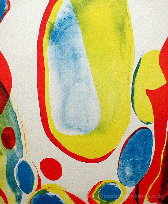 Wir bieten Ihnen eine handgefertigte Reproduktion auf Leinwand des berühmten Kunstwerks 'Rot, Gelb und Blau' von Alice Baber, aus dem Reproduktionsmuseum.