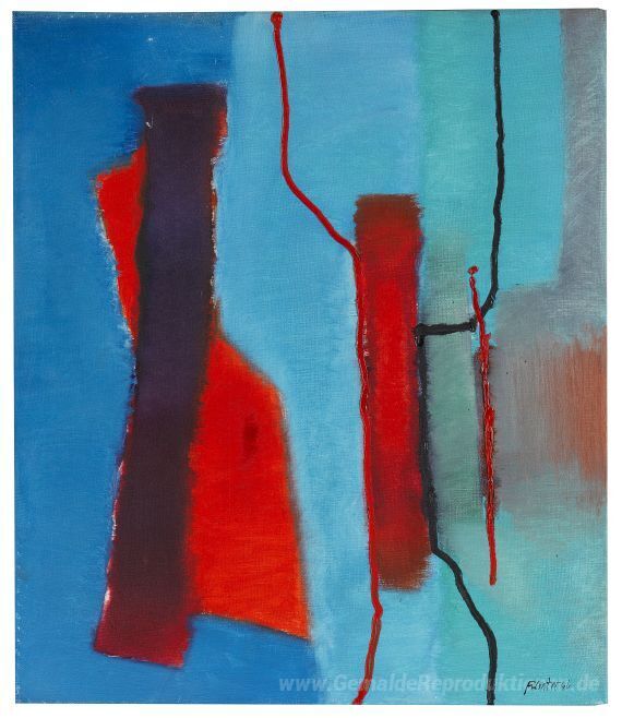 Wir bieten Ihnen eine handgefertigte Reproduktion auf Leinwand des berühmten Kunstwerks 'Rot vor Blau' von Fritz Winter, aus dem Reproduktionsmuseum.