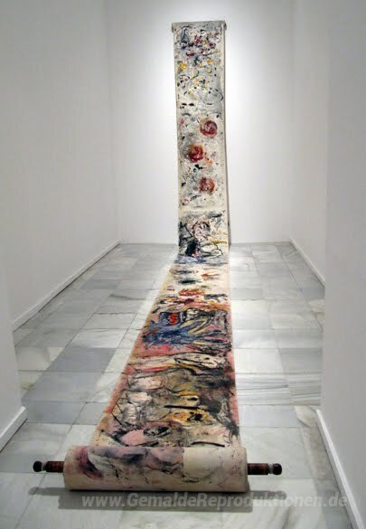 Wir bieten Ihnen eine handgefertigte Reproduktion auf Leinwand des berühmten Kunstwerks 'Rotolo de Pittura industriale' von Giuseppe Pinot-Gallizio, aus dem Reproduktionsmuseum.