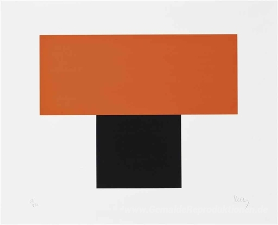Wir bieten Ihnen eine handgefertigte Reproduktion auf Leinwand des berühmten Kunstwerks 'Rot-Orange auf Schwarz' von Ellsworth Kelly, aus dem Reproduktionsmuseum.