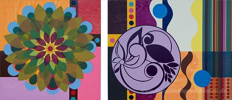 Wir bieten Ihnen eine handgefertigte Reproduktion auf Leinwand des berühmten Kunstwerks 'Salz (Diptychon)' von Beatriz Milhazes, aus dem Reproduktionsmuseum.