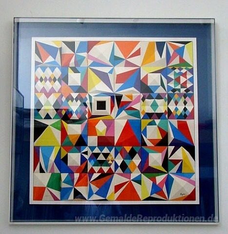 Wir bieten Ihnen eine handgefertigte Reproduktion auf Leinwand des berühmten Kunstwerks 'Schwares Loch' von Yaacov Agam, aus dem Reproduktionsmuseum.