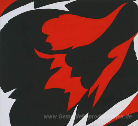 Wir bieten Ihnen eine handgefertigte Reproduktion auf Leinwand des berühmten Kunstwerks 'Schwarz Rot' von Jack Youngerman, aus dem Reproduktionsmuseum.