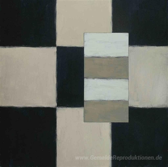 Wir bieten Ihnen eine handgefertigte Reproduktion auf Leinwand des berühmten Kunstwerks 'Schwarz Weiß Weiß' von Sean Scully, aus dem Reproduktionsmuseum.