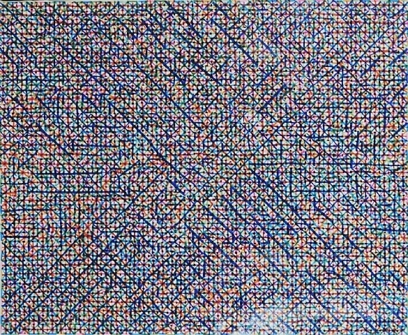 Wir bieten Ihnen eine handgefertigte Reproduktion auf Leinwand des berühmten Kunstwerks 'Shi-Shi 91-12' von Ding Yi, aus dem Reproduktionsmuseum.