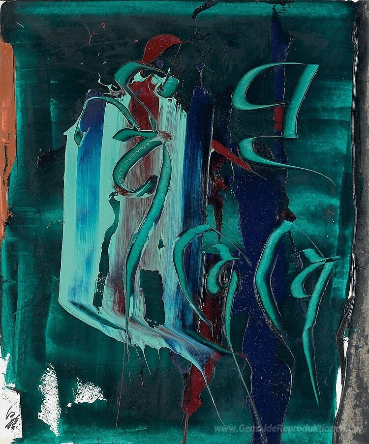 Wir bieten Ihnen eine handgefertigte Reproduktion auf Leinwand des berühmten Kunstwerks 'Shitenno' von Kazuo Shiraga, aus dem Reproduktionsmuseum.