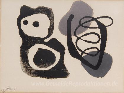 Wir bieten Ihnen eine handgefertigte Reproduktion auf Leinwand des berühmten Kunstwerks 'Siebdruck 11' von Fritz Winter, aus dem Reproduktionsmuseum.