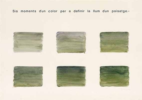 Wir bieten Ihnen eine handgefertigte Reproduktion auf Leinwand des berühmten Kunstwerks 'Six Moments, um Licht in einer Landschaft definieren' von Joan Hernandez Pijuan, aus dem Reproduktionsmuseum.
