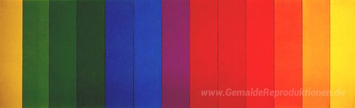 Wir bieten Ihnen eine handgefertigte Reproduktion auf Leinwand des berühmten Kunstwerks 'Spektrum III' von Ellsworth Kelly, aus dem Reproduktionsmuseum.