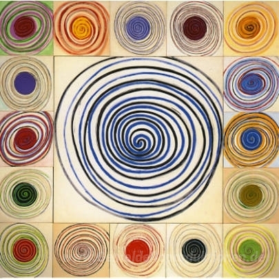 Wir bieten Ihnen eine handgefertigte Reproduktion auf Leinwand des berühmten Kunstwerks 'Spiralen' von Terry Frost, aus dem Reproduktionsmuseum.