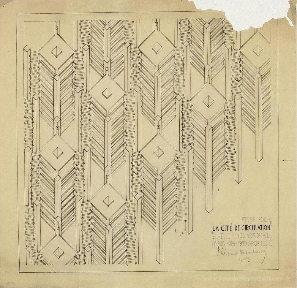 Wir bieten Ihnen eine handgefertigte Reproduktion auf Leinwand des berühmten Kunstwerks 'Stadtverkehr' von Theo van Doesburg, aus dem Reproduktionsmuseum.