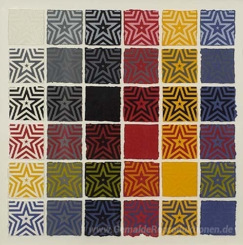 Wir bieten Ihnen eine handgefertigte Reproduktion auf Leinwand des berühmten Kunstwerks 'Sterne 5 Spitz' von Sol LeWitt, aus dem Reproduktionsmuseum.