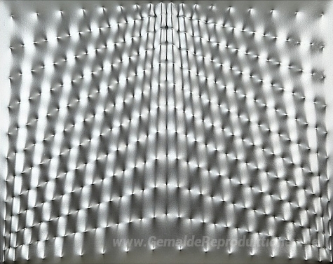 Wir bieten Ihnen eine handgefertigte Reproduktion auf Leinwand des berühmten Kunstwerks 'Superficie Argento' von Enrico Castellani, aus dem Reproduktionsmuseum.