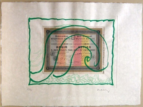 Wir bieten Ihnen eine handgefertigte Reproduktion auf Leinwand des berühmten Kunstwerks 'Tafel III aus dem Portfolio Krach' von Pierre Alechinsky, aus dem Reproduktionsmuseum.