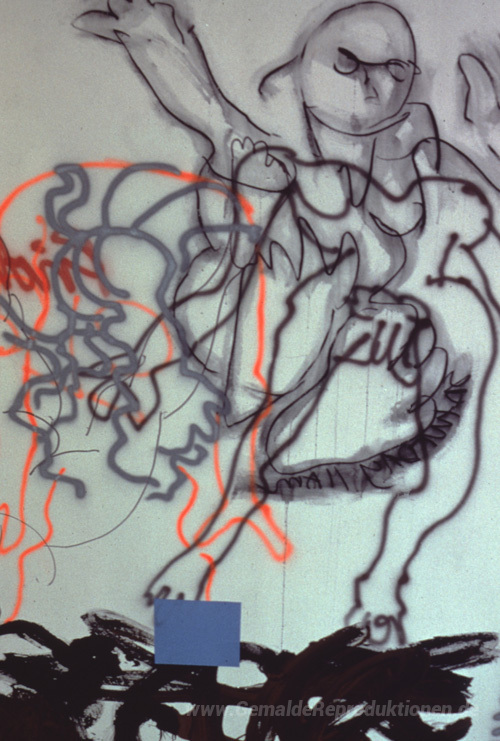 Wir bieten Ihnen eine handgefertigte Reproduktion auf Leinwand des berühmten Kunstwerks 'Tagebuch Painting # 28 - Wolken und 4 Kreise (Detail)' von Robert Huot, aus dem Reproduktionsmuseum.