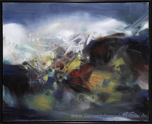 Wir bieten Ihnen eine handgefertigte Reproduktion auf Leinwand des berühmten Kunstwerks 'Tagundnachtgleiche' von Chu Teh-Chun, aus dem Reproduktionsmuseum.