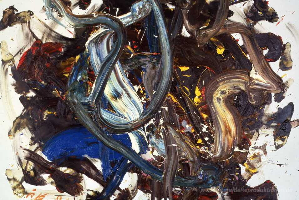 Wir bieten Ihnen eine handgefertigte Reproduktion auf Leinwand des berühmten Kunstwerks 'Tanz der Zweiköpfige Drache' von Kazuo Shiraga, aus dem Reproduktionsmuseum.