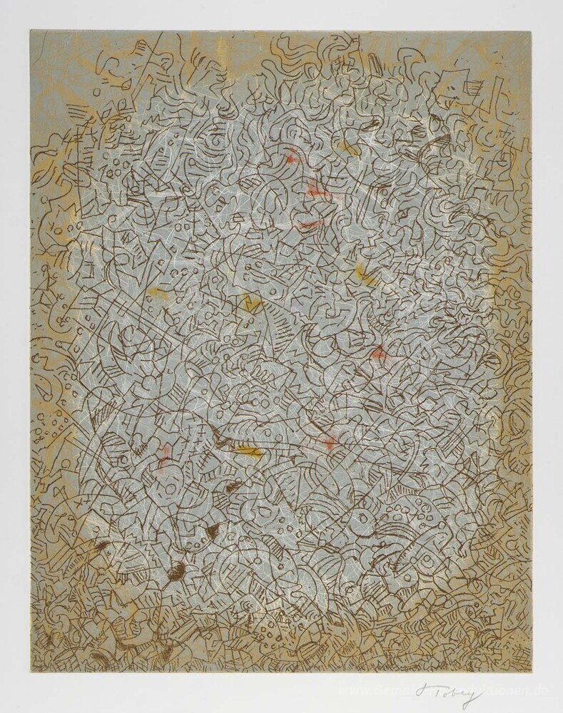 Wir bieten Ihnen eine handgefertigte Reproduktion auf Leinwand des berühmten Kunstwerks 'To Life' von Mark Tobey, aus dem Reproduktionsmuseum.