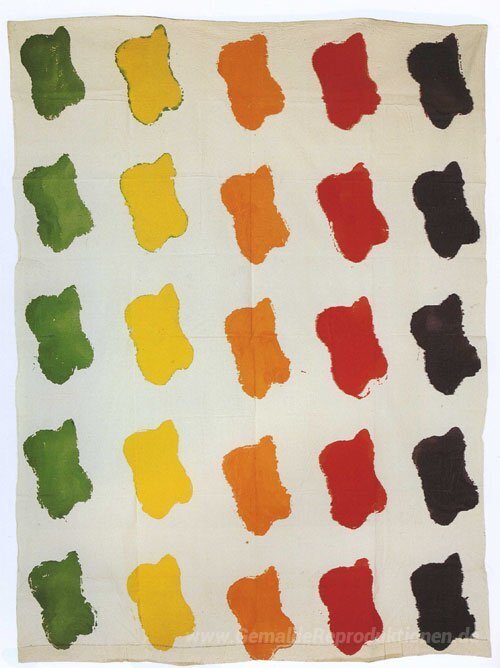 Wir bieten Ihnen eine handgefertigte Reproduktion auf Leinwand des berühmten Kunstwerks 'Unbekannter Titel' von Claude Viallat, aus dem Reproduktionsmuseum.