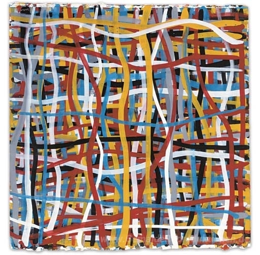 Wir bieten Ihnen eine handgefertigte Reproduktion auf Leinwand des berühmten Kunstwerks 'Unregelmäßige Vertikale und horizontale Farbbänder Überlagerte' von Sol LeWitt, aus dem Reproduktionsmuseum.