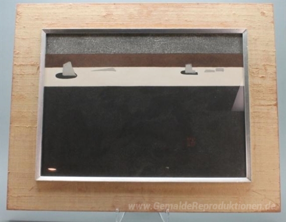 Wir bieten Ihnen eine handgefertigte Reproduktion auf Leinwand des berühmten Kunstwerks 'Untitled (Abstract Holzblockdruck des Feldes mit Steinen)' von Kiyoshi Saito, aus dem Reproduktionsmuseum.