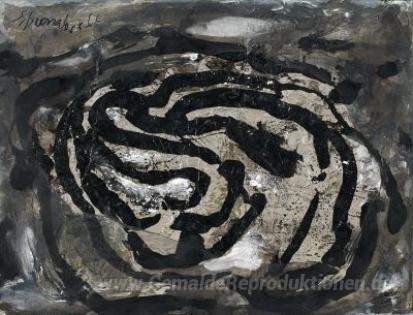 Wir bieten Ihnen eine handgefertigte Reproduktion auf Leinwand des berühmten Kunstwerks 'Untitled (EL X)' von Emil Schumacher, aus dem Reproduktionsmuseum.