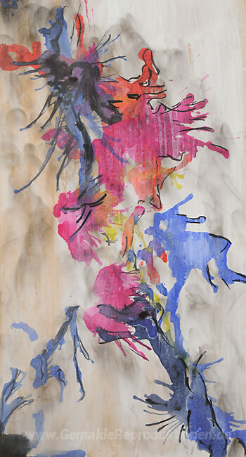Wir bieten Ihnen eine handgefertigte Reproduktion auf Leinwand des berühmten Kunstwerks 'Untitled (Fumage-Encrage)' von Wolfgang Paalen, aus dem Reproduktionsmuseum.