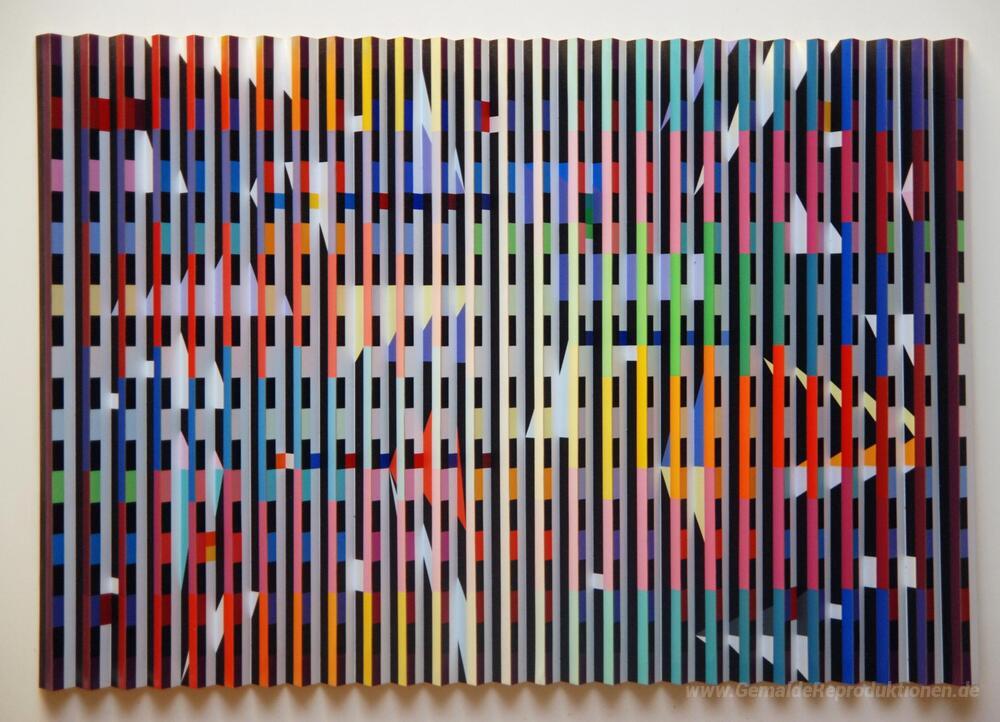 Wir bieten Ihnen eine handgefertigte Reproduktion auf Leinwand des berühmten Kunstwerks 'Untitled (Polymorph Serigraphie)' von Yaacov Agam, aus dem Reproduktionsmuseum.