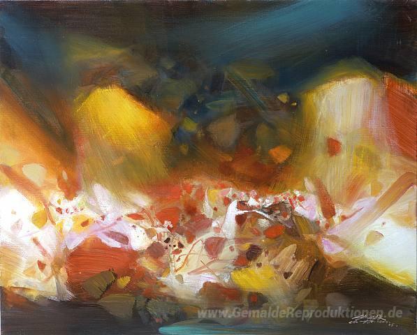 Wir bieten Ihnen eine handgefertigte Reproduktion auf Leinwand des berühmten Kunstwerks 'Vie multipliée' von Chu Teh-Chun, aus dem Reproduktionsmuseum.