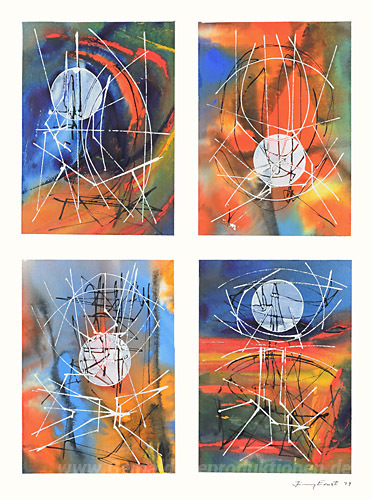 Wir bieten Ihnen eine handgefertigte Reproduktion auf Leinwand des berühmten Kunstwerks 'Vier Tage' von Jimmy Ernst, aus dem Reproduktionsmuseum.