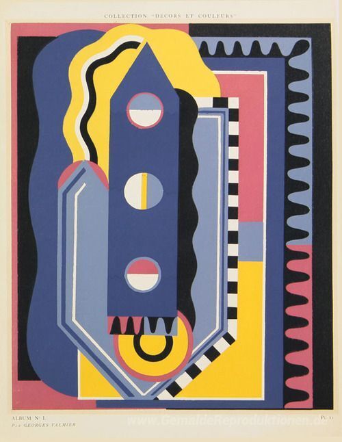 Wir bieten Ihnen eine handgefertigte Reproduktion auf Leinwand des berühmten Kunstwerks 'Von Kollektion Dekore et Couleurs, Album No. 1' von Georges Valmier, aus dem Reproduktionsmuseum.