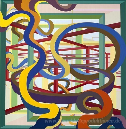 Wir bieten Ihnen eine handgefertigte Reproduktion auf Leinwand des berühmten Kunstwerks 'Vorcex IV' von Al Held, aus dem Reproduktionsmuseum.