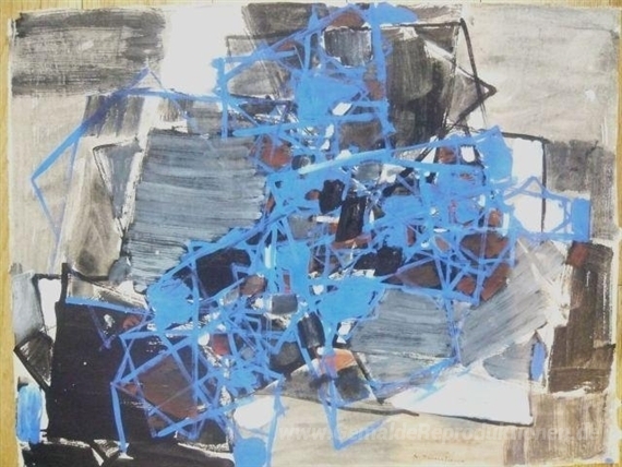 Wir bieten Ihnen eine handgefertigte Reproduktion auf Leinwand des berühmten Kunstwerks 'Zusammensetzung Geometrique' von Natalia Dumitresco, aus dem Reproduktionsmuseum.