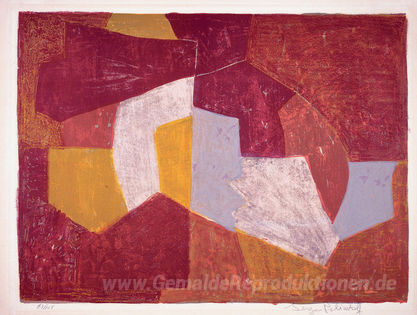 Wir bieten Ihnen eine handgefertigte Reproduktion auf Leinwand des berühmten Kunstwerks 'Zusammensetzung karmin, brune, jaune et grise' von Serge Poliakoff, aus dem Reproduktionsmuseum.