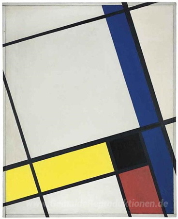 Wir bieten Ihnen eine handgefertigte Reproduktion auf Leinwand des berühmten Kunstwerks 'Zusammensetzung néo-plastique nicht. 5 O' von Cesar Domela, aus dem Reproduktionsmuseum.