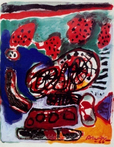 Wir bieten Ihnen eine handgefertigte Reproduktion auf Leinwand des berühmten Kunstwerks 'Zusammensetzung' von Corneille, aus dem Reproduktionsmuseum.
