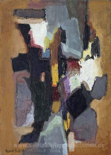 Wir bieten Ihnen eine handgefertigte Reproduktion auf Leinwand des berühmten Kunstwerks 'Zusammensetzung' von Francis Bott, aus dem Reproduktionsmuseum.