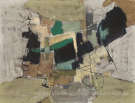 Wir bieten Ihnen eine handgefertigte Reproduktion auf Leinwand des berühmten Kunstwerks 'Zusammensetzung' von Francis Bott, aus dem Reproduktionsmuseum.