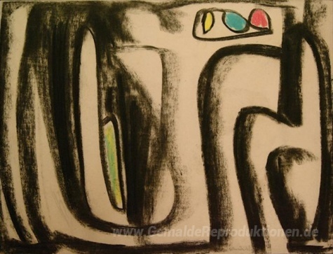 Wir bieten Ihnen eine handgefertigte Reproduktion auf Leinwand des berühmten Kunstwerks 'Zusammensetzung' von Gerard Schneider, aus dem Reproduktionsmuseum.