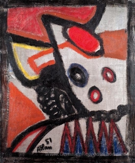 Wir bieten Ihnen eine handgefertigte Reproduktion auf Leinwand des berühmten Kunstwerks 'Zusammensetzung' von Jean-Michel Atlan, aus dem Reproduktionsmuseum.