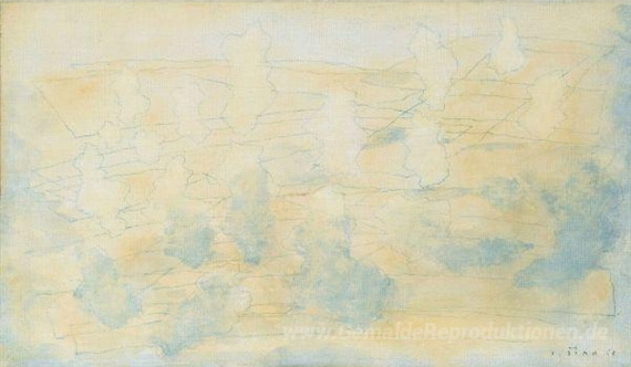 Wir bieten Ihnen eine handgefertigte Reproduktion auf Leinwand des berühmten Kunstwerks 'Zusammensetzung' von Josef Sima, aus dem Reproduktionsmuseum.