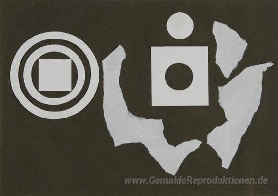 Wir bieten Ihnen eine handgefertigte Reproduktion auf Leinwand des berühmten Kunstwerks 'Zusammensetzung' von Leo Leuppi, aus dem Reproduktionsmuseum.