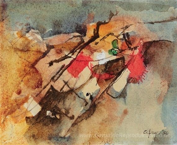 Wir bieten Ihnen eine handgefertigte Reproduktion auf Leinwand des berühmten Kunstwerks 'Zusammensetzung' von Afro, aus dem Reproduktionsmuseum.