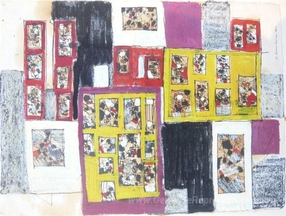 Wir bieten Ihnen eine handgefertigte Reproduktion auf Leinwand des berühmten Kunstwerks 'Zusammensetzung' von Natalia Dumitresco, aus dem Reproduktionsmuseum.