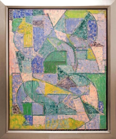 Wir bieten Ihnen eine handgefertigte Reproduktion auf Leinwand des berühmten Kunstwerks 'Zusammensetzung verte' von Alexandre Istrati, aus dem Reproduktionsmuseum.