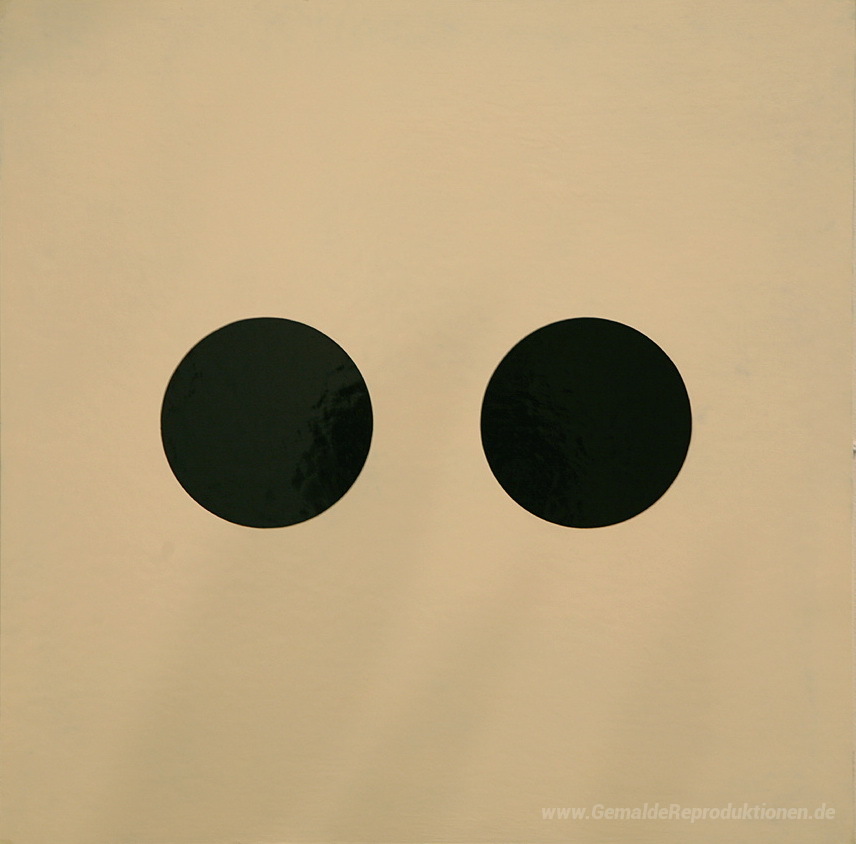 Wir bieten Ihnen eine handgefertigte Reproduktion auf Leinwand des berühmten Kunstwerks 'Zwei Kreise' von Alexander Liberman, aus dem Reproduktionsmuseum.