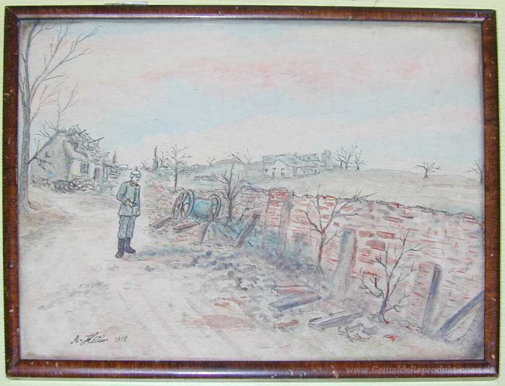 Wir bieten Ihnen eine handgefertigte Reproduktion auf Leinwand des berühmten Kunstwerks 'Battlefield Pinnwand' von Adolf Hitler, aus dem Reproduktionsmuseum.