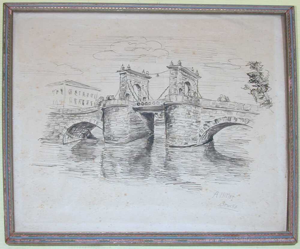 Wir bieten Ihnen eine handgefertigte Reproduktion auf Leinwand des berühmten Kunstwerks 'Brücke mit Towers' von Adolf Hitler, aus dem Reproduktionsmuseum.